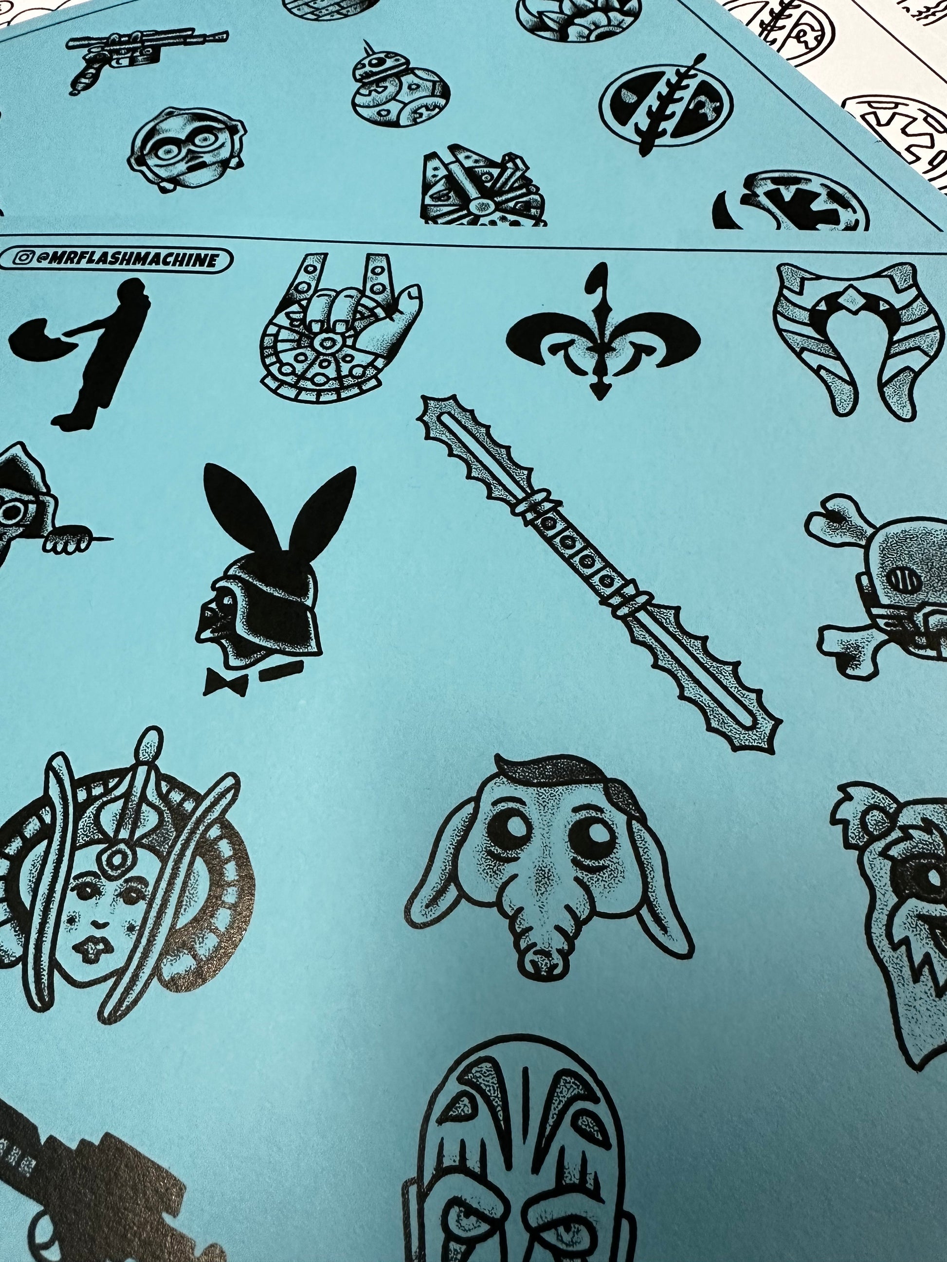 May the 4th be with you! This is 3 sheet set of fun small designs to keep your shop busy banging out tattoos. This set includes lines to make your work day go smoothly.