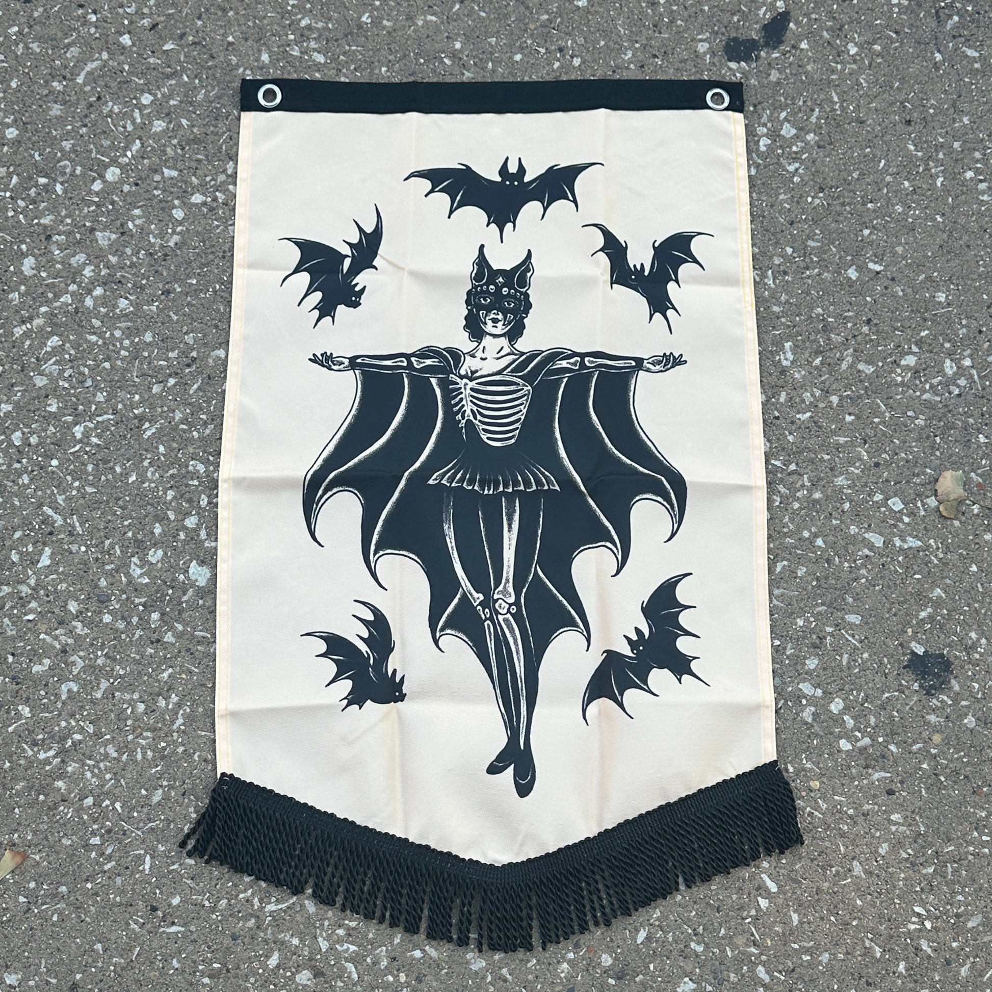 - Banner is 18"X28", heavy polyester with a sewn finished edge. (Indoor us only)