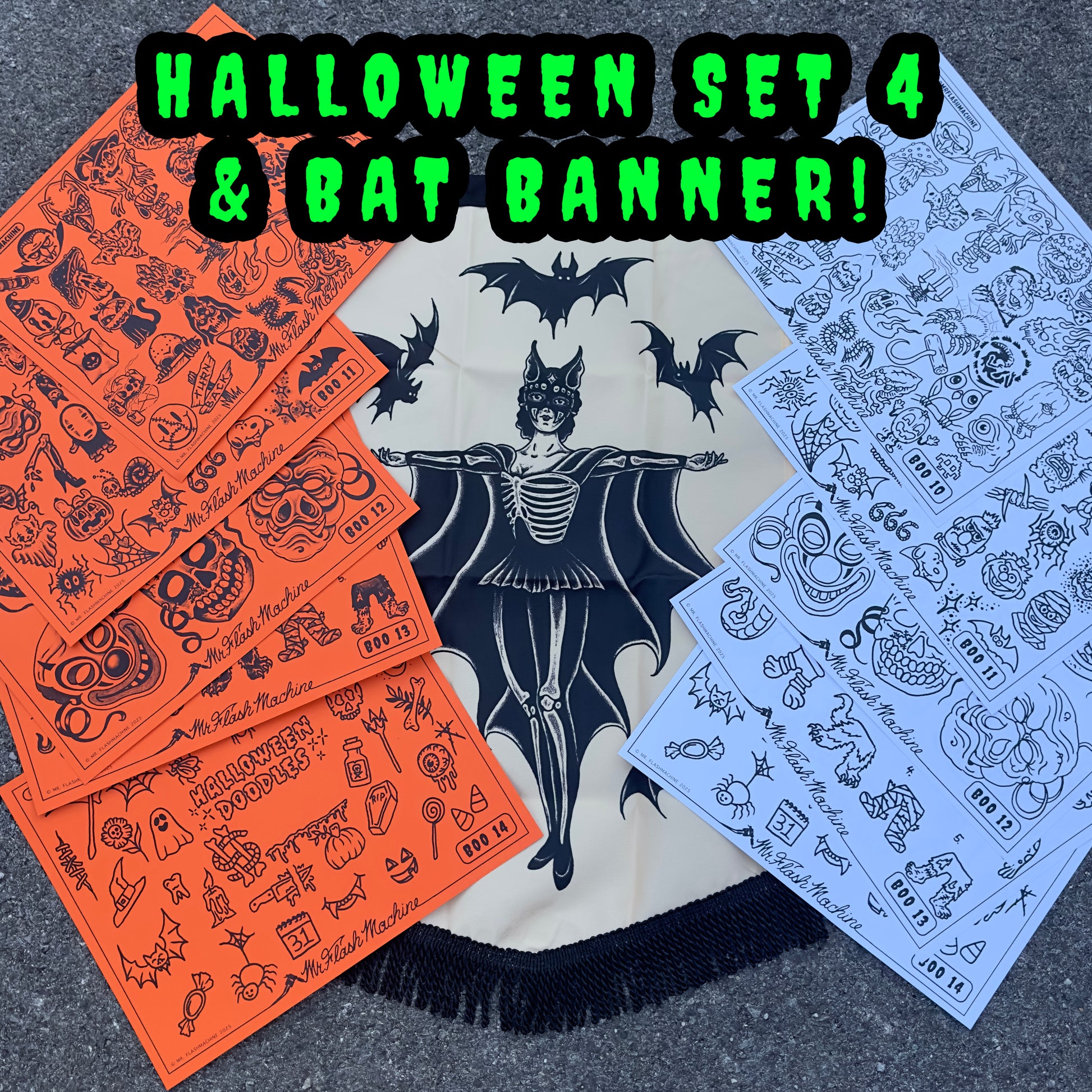 Get ready for tricks and treats with the newest installment to our Halloween series! Set 4 comes with 5 sheets this time. Each page is packed with fresh new Halloween designs that will keep you busy during a seasonal tattoo event or for year-round use. This set includes line sheets to keep a busy day moving smoothly.